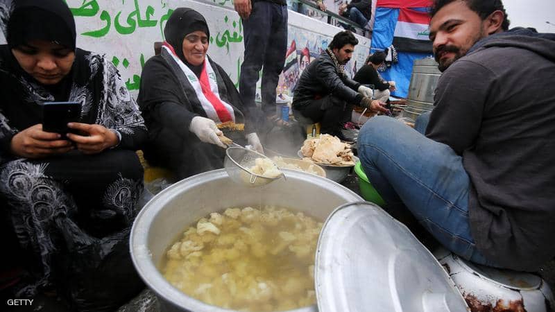 في ساحة التحرير.. مائدة “غير طائفية” تجمع العراقيين- وكالات – أبوظبيفي ساحة التحرير ببغداد، هناك محتجون مناهضون للحكومة يتظاهرون من أجل مستقبل أفضل للعراق، وهناك متطوعون يطعمونهم.