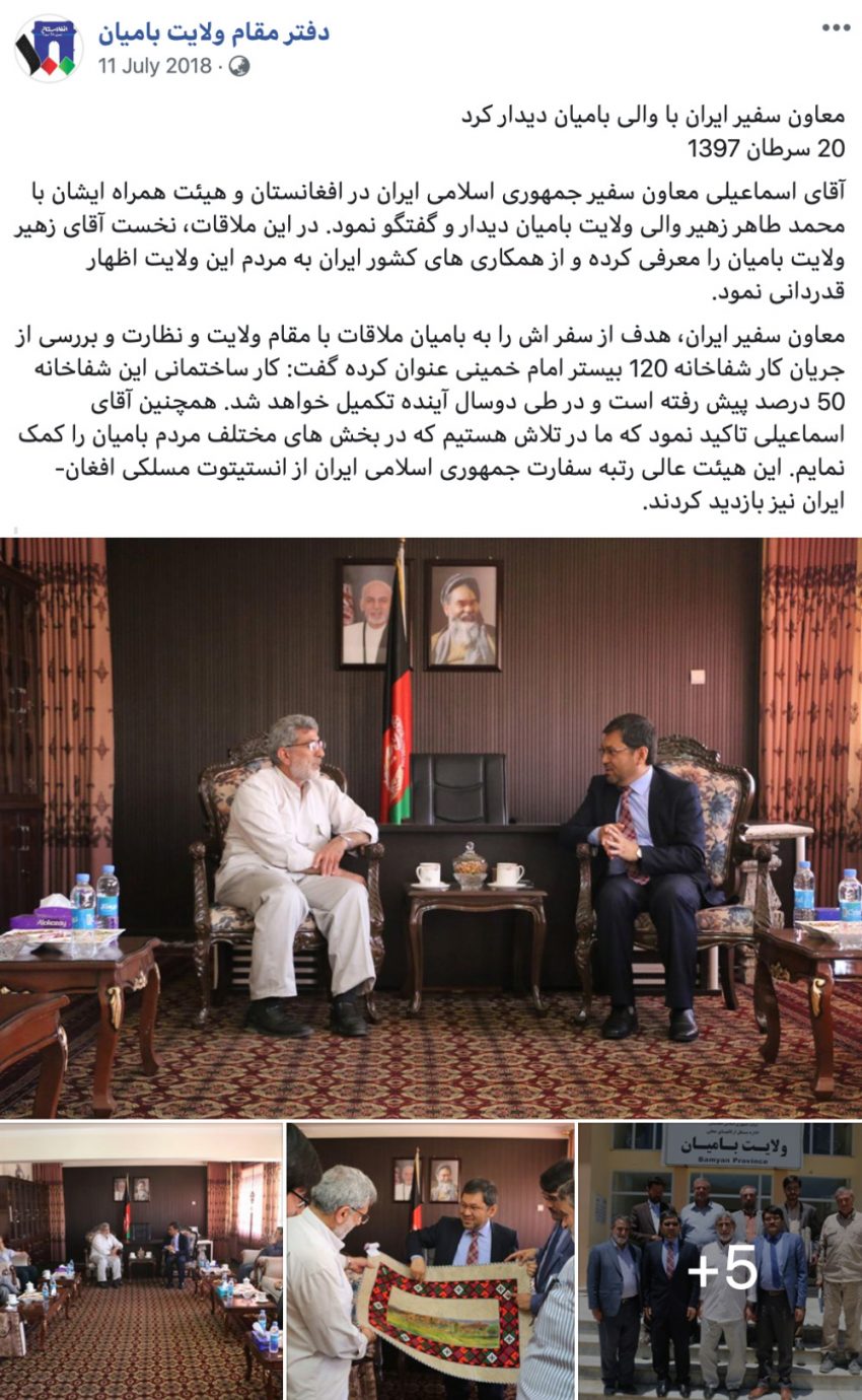 وصرح ظهير بأن قاآني زار باميان لاستئناف أعمال بناء مستشفى بـ120 سريرا ممول إيرانيا وتوقفت الأشغال به في الأشهر الأخيرة.