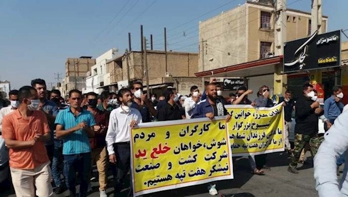 ورغم الانتشار المجدد لفيروس كورونا في إيران، قام عمال شركة هفت تبه لقصب السكر بمسيرة احتجاجية في شوارع مدينة شوش جنوب غرب إيران .