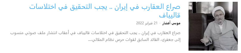 وكتب موقع خبر فوري التابع للنظام في 26مايو2024 يقول: خلال 18عامًا ظل اسم قاليباف يذكر في الساحة التنفيذية في البلاد، حتى اليوم، حيث يتمتع بخبرة 4سنوات في قيادة سفينة بهارستان، تم نشر ما لا يقل عن 21عنوانًا حول قضاياه وعائلته المثيرة للجدل. وهذا يعني أنه كل 300يوم يتم توجيه اتهام إليه. لكنه يتجاهل هذه الفضائح في صراعه من أجل إعادة الجلوس على مقعد رئيس البرلمان. حتى أنه لم يعقد حتى أي مؤتمر صحفي خلال السنوات الـ4 الماضية، على عكس روتين المؤتمرات الصحفية المعتادة لرؤساء البرلمان.