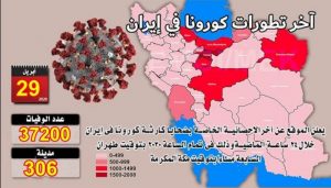 في إيران يتجاوز عدد ضحايا كورونا في 306 مدن أكثر من 37200 يوم الأربعاء 29 أبريل-أحدث ضحايا فيروس كورونا في إيران في إيران يتجاوز عدد ضحايا كورونا في 306 مدن أكثر من 37200 والعدد الفعلي أعلى