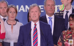 supporter of Iranian resistant : At the “Free Iran” rally on Saturday 1st July just outside Paris, many prominent political figures and dignitaries from around