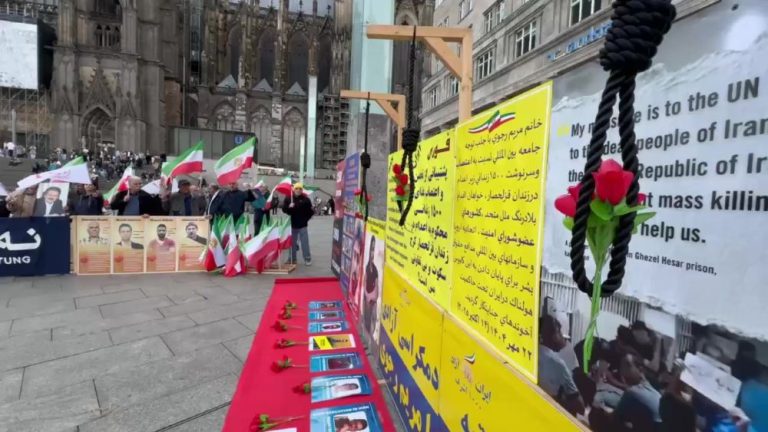 MEK supporters in Cologne back 1,500 Qezel Hesar prisoners on hunger strike, demanding an end to executions and justice in Iran.