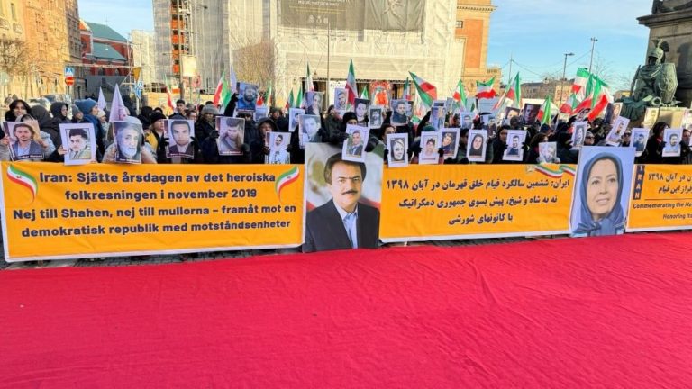 Iranians rally in Stockholm to honor November 2019 uprising, condemn the clerical regime, and call for regime change.