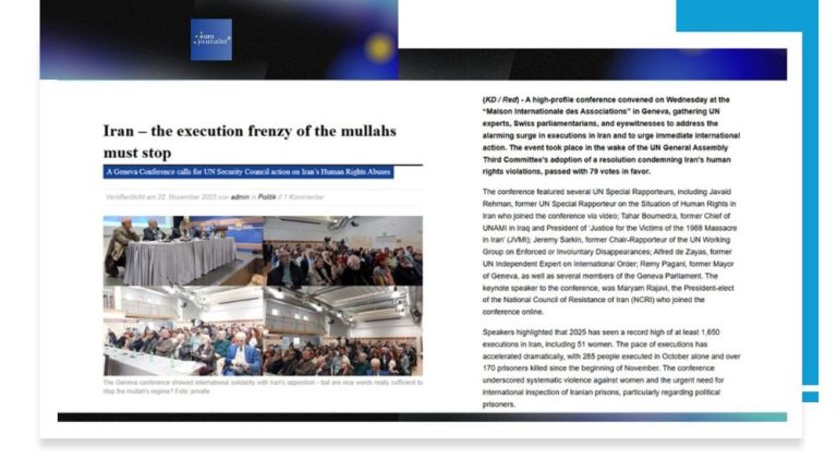 Eurojournalist Report Highlights Geneva Conference Urging UN Action on Iran’s Execution Crisis Read More » November 25, 2025