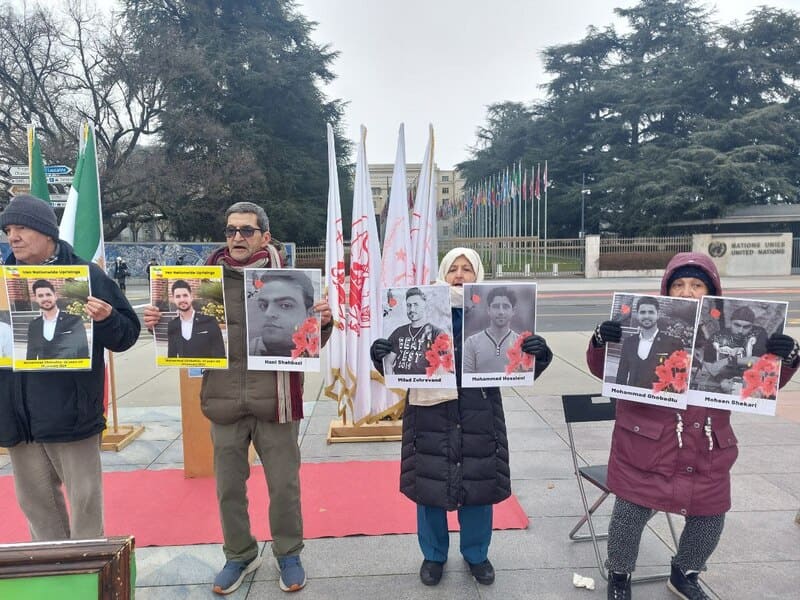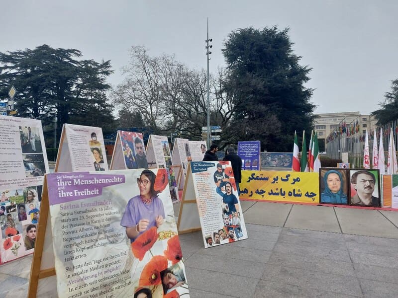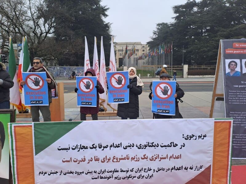 Geneva, Switzerland – January 21, 2025: Supporters of the People’s Mojahedin Organization of Iran (PMOI/MEK) held a rally and exhibition in solidarity with the “No to Executions Campaign” campaign. This campaign is a response to the executions carried out in prisons by the Iranian regime.