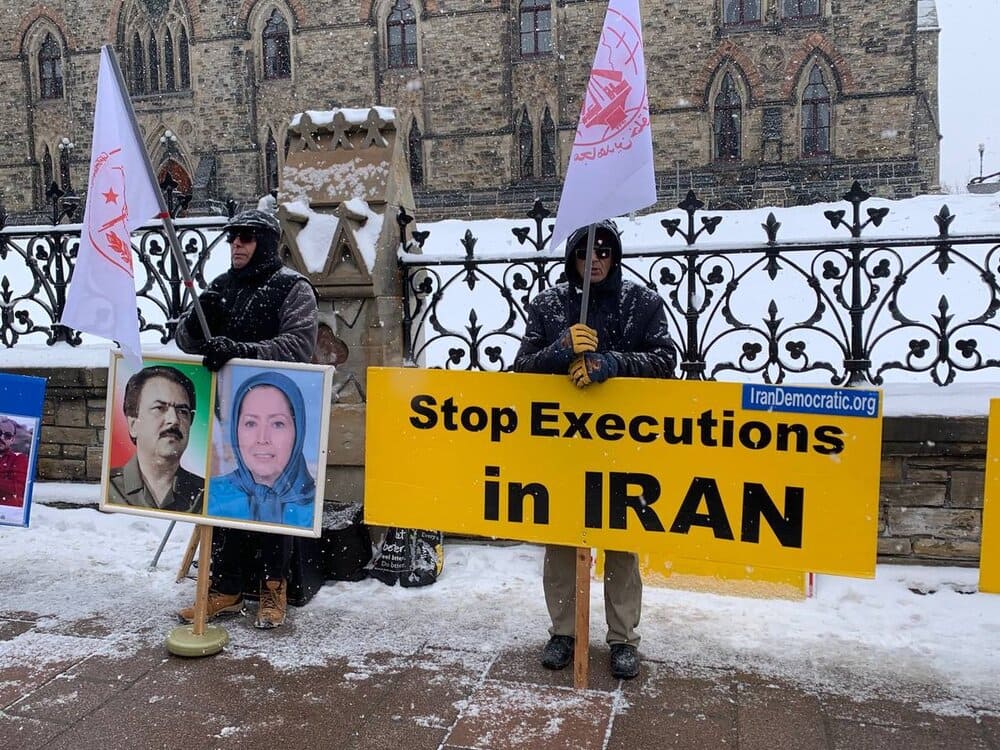 Canada – January 25, 2025: Despite snowy and freezing weather, supporters of the People’s Mojahedin Organization of Iran (PMOI/MEK) held rallies and exhibitions in Ottawa, Toronto, and Vancouver to protest the death sentences of political prisoners associated with the PMOI, particularly Behrouz Ehsani and Mehdi Hassani, who face imminent execution.