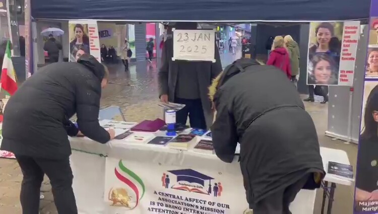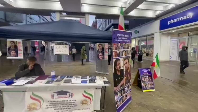 Manchester, UK – January 23, 2025: Members of the Academics in Exile Association, supporting the People’s Mojahedin Organization of Iran (PMOI/MEK), organized a book and photo exhibition to protest the death sentences imposed on political prisoners associated with the PMOI