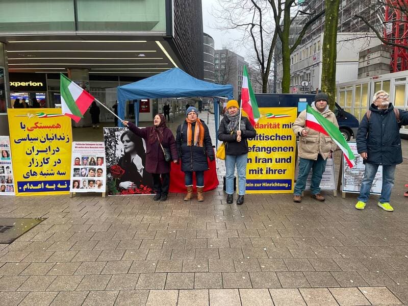 Hamburg, Germany—January 14, 2025: Supporters of the People’s Mojahedin Organization of Iran (PMOI/MEK) organized an exhibition protesting the death sentences imposed on political prisoners associated with the PMOI. The event also aimed to support the “No to Executions” Tuesday Campaign, which advocates for Iranian political prisoners.