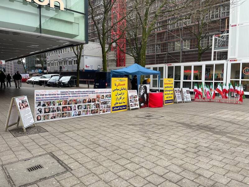 Participants at the exhibition in Hamburg, Germany, called for an end to the policy of appeasement towards the Iranian regime and demanded that the Iranian Revolutionary Guard Corps (IRGC) be designated as a terrorist organization.