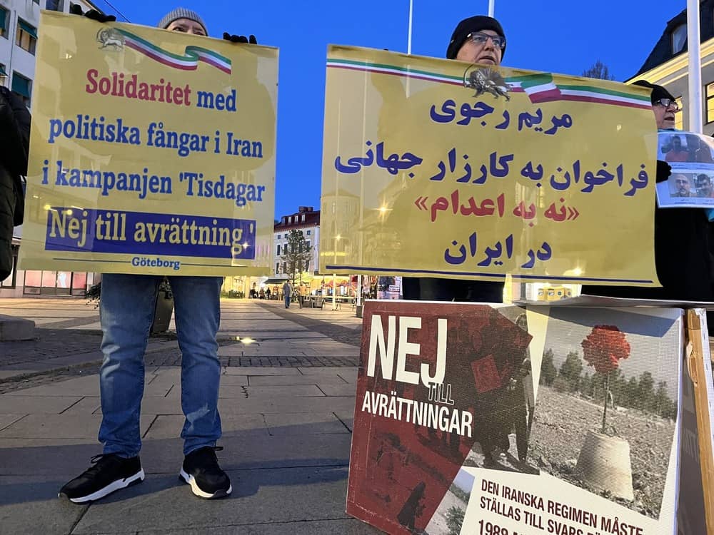 The Iranian community in Gothenburg denounced the rising wave of executions by the Iranian regime, calling for the immediate release of all political prisoners. MEK supporters in Gothenburg further demanded that the leaders of the mullahs’ regime be tried for crimes against humanity in an international court.