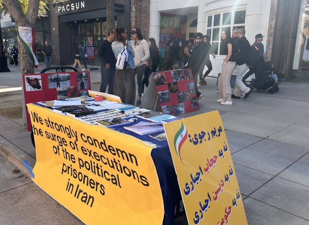 Los Angeles, California – February 15, 2025: Supporters of the People’s Mojahedin Organization of Iran (PMOI/MEK) held an exhibition to show solidarity with the Iranian Revolution and denounce the regime’s growing use of executions.