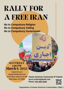 They promoted the upcoming rally in Washington, D.C., on Saturday, March 8, 2025, to demand justice, democracy, and an end to oppression in Iran.