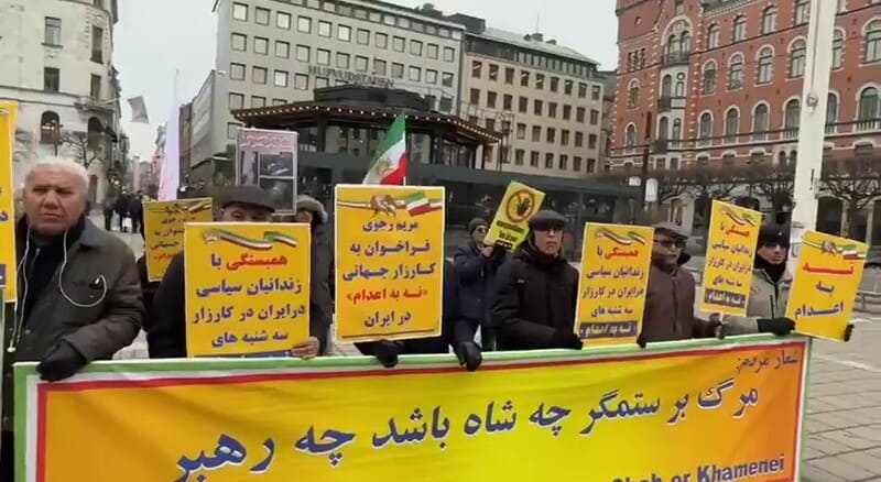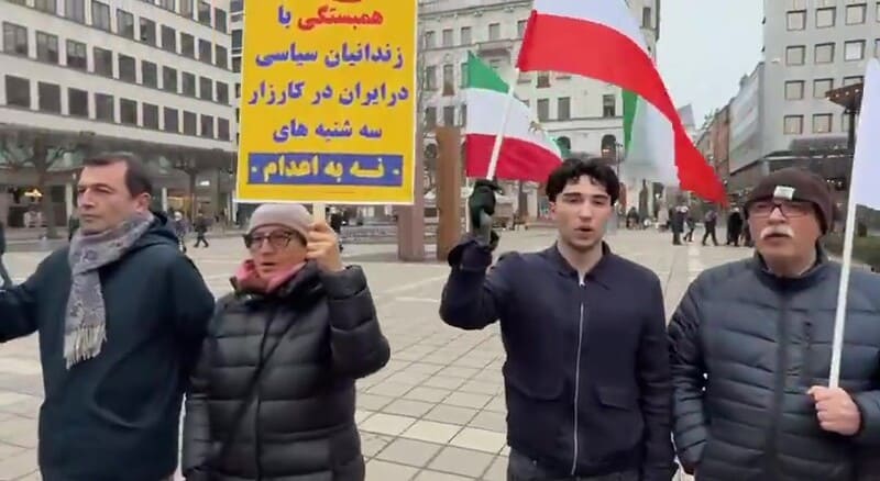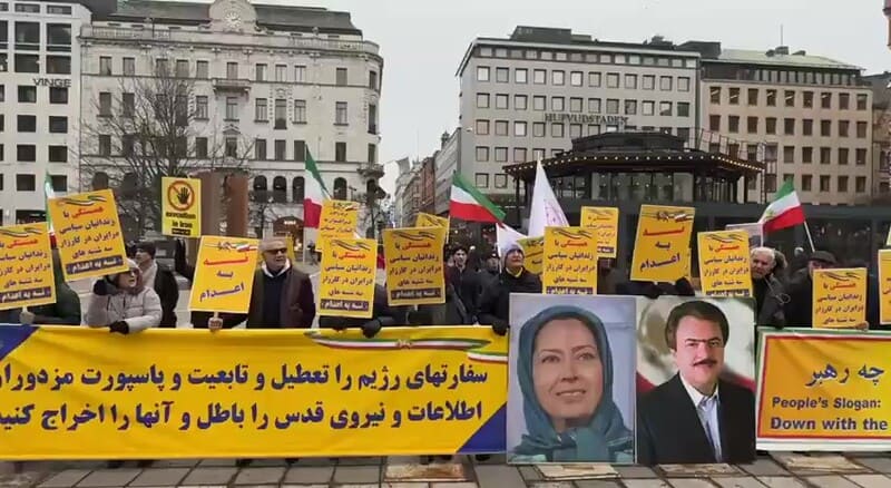 Stockholm, Sweden – February 22, 2025: Supporters of the People’s Mojahedin Organization of Iran (PMOI/MEK) held a rally in front of Foreign Ministry. They condemned the death sentences of political prisoners affiliated with the PMOI, particularly Behrouz Ehsani and Mehdi Hassani, who face imminent execution. Protesters also called for the immediate release of all political prisoners.