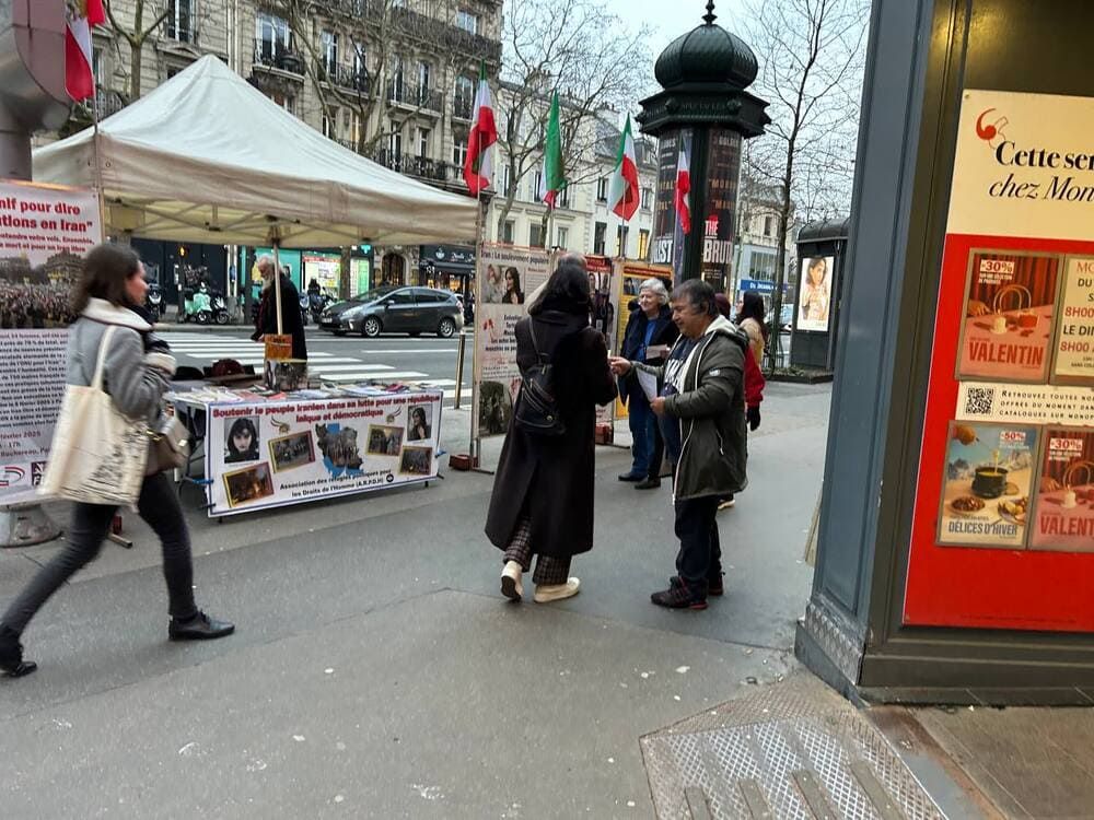 3. MEK supporters in Paris are campaigning hard with posters for the #ParisFreeIranRally! Happening Feb 8. Demand #FreeIran2025, end executions, and release political prisoners.