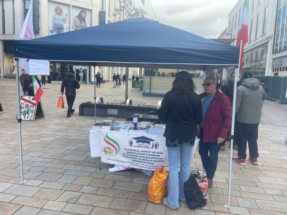 Winchester, England – February 25-26, 2025: Members of the Academics in Exile Association, who support the People’s Mojahedin Organization of Iran (PMOI/MEK), organized a book exhibition to condemn human rights violations in Iran.