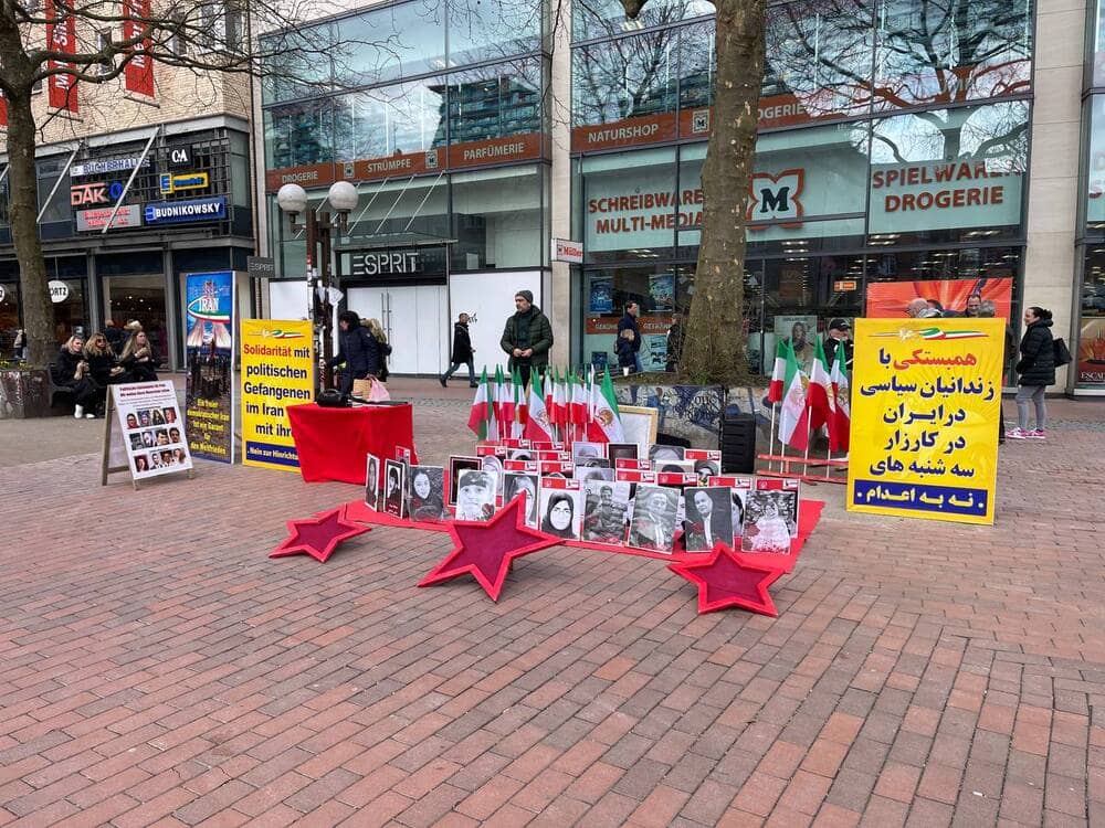 Hamburg, Germany – March 15, 2025: Supporters of the People’s Mojahedin Organization of Iran (PMOI/MEK) organized an exhibition to condemn the death sentences of political prisoners affiliated with the PMOI, particularly Behrouz Ehsani and Mehdi Hassan, who are at imminent risk of execution. Protesters demanded the immediate release of all political prisoners.