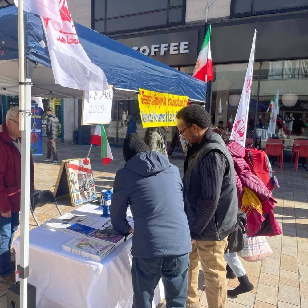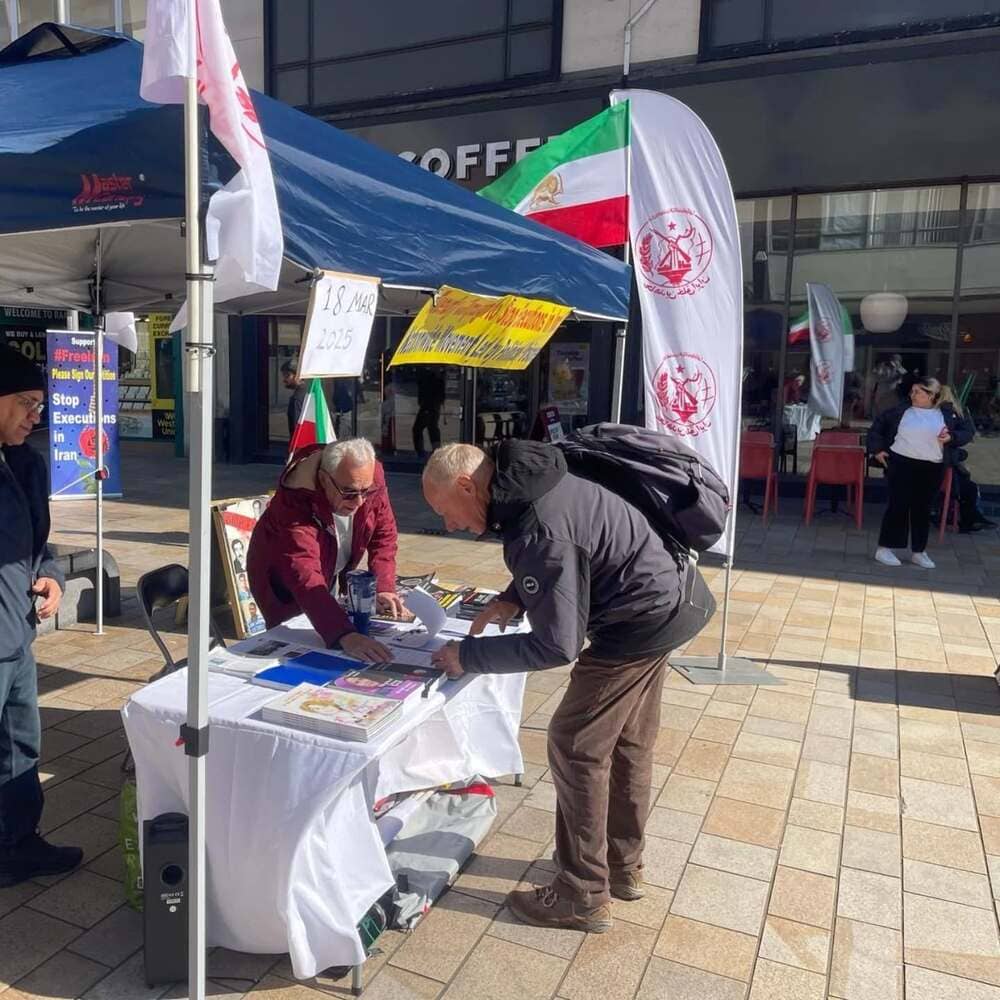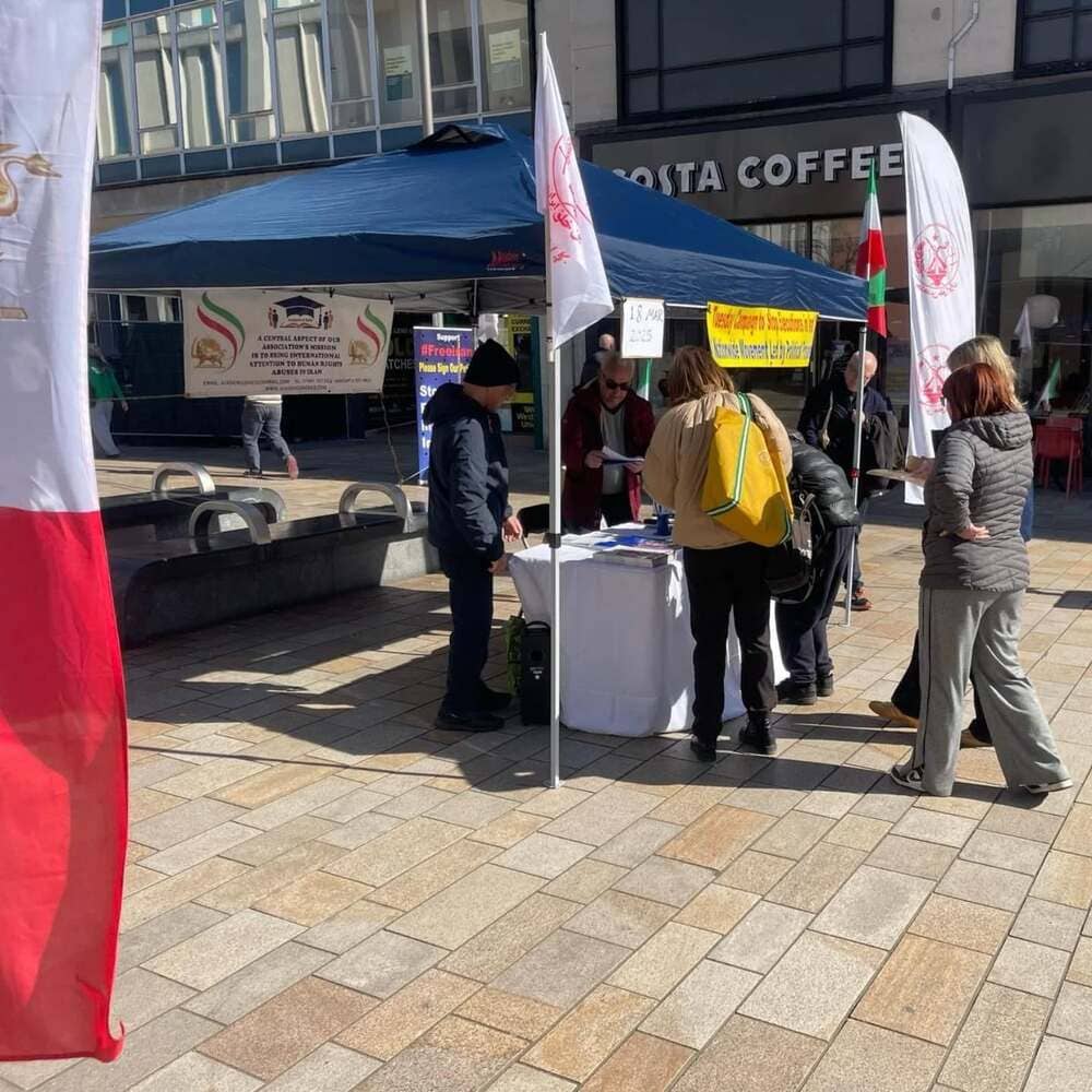 in #Sheffield, where residents gathered to sign a petition urging the UK government to designate the #IRGC as a terrorist organization and expel its operatives from the country. The petition also called for an end to the torture and execution of #Iranian prisoners. 18/03/2025 pic.twitter.com/KOd66kRrE7