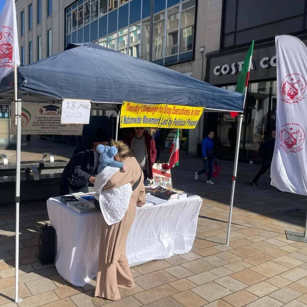 Sheffield, UK – March 18, 2025: The Academics in Exile Association, which supports the People’s Mojahedin Organization of Iran (PMOI/MEK), organized a book and photo exhibition to protest the death sentences imposed on political prisoners affiliated with the PMOI.