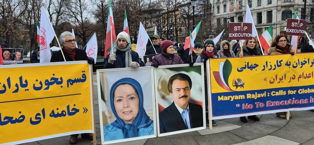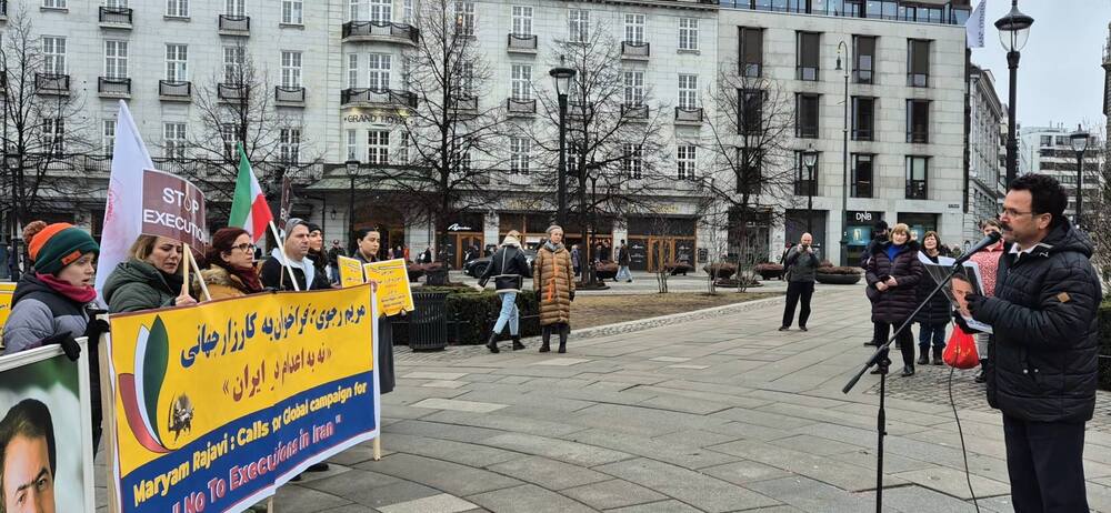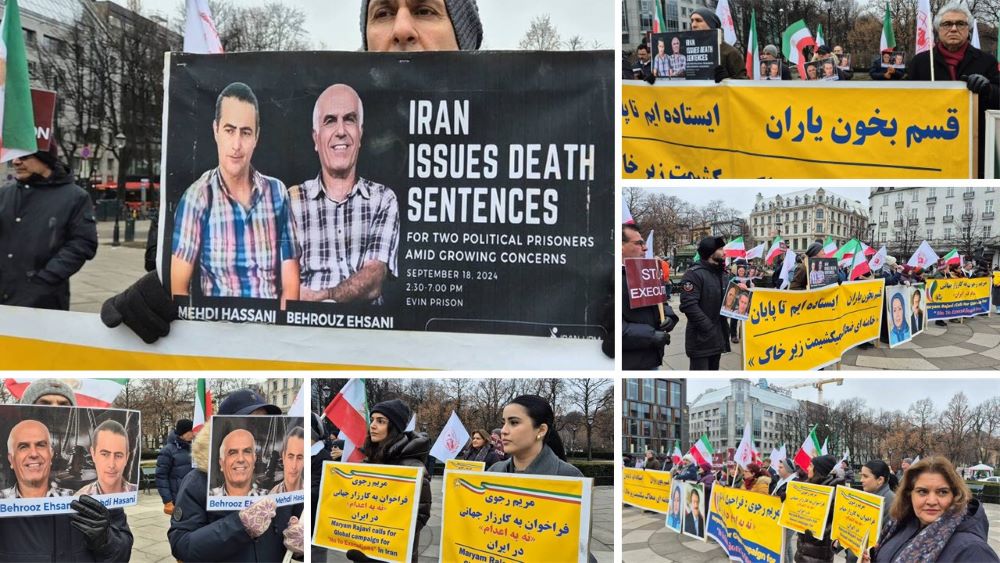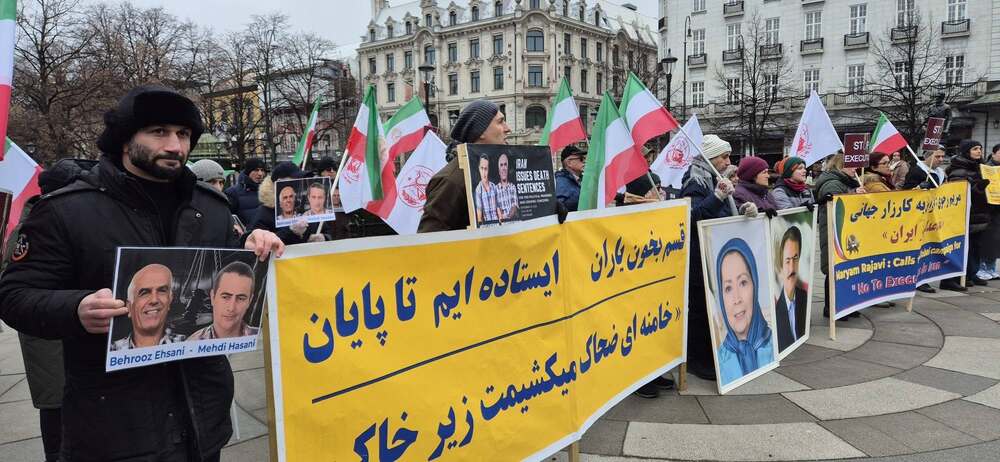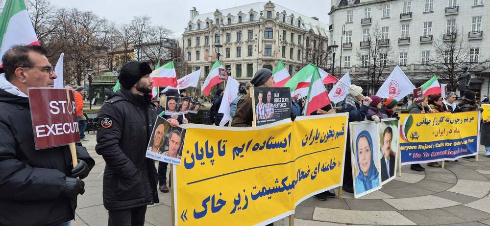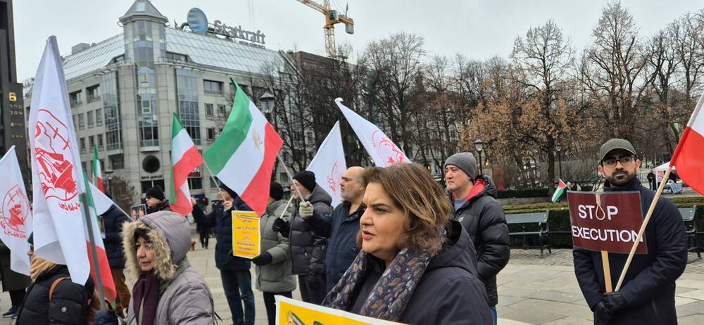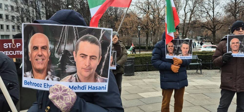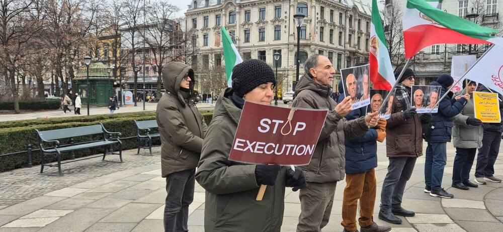 Oslo, Norway – March 1, 2025: Supporters of the Iranian Resistance (NCRI and PMOI) held a rally in front of the Norwegian Parliament to protest the death sentences of political prisoners affiliated with the PMOI, particularly Behrouz Ehsani and Mehdi Hassani, who face imminent execution. Participants also demanded the immediate release of all political prisoners.