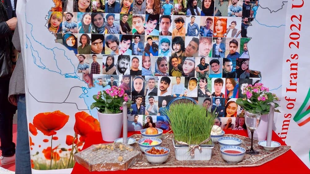 In the exhibition, a Haft-Sin table was set up to mark the Nowruz celebrations, accompanied by images of martyrs from Iran’s nationwide uprisings.