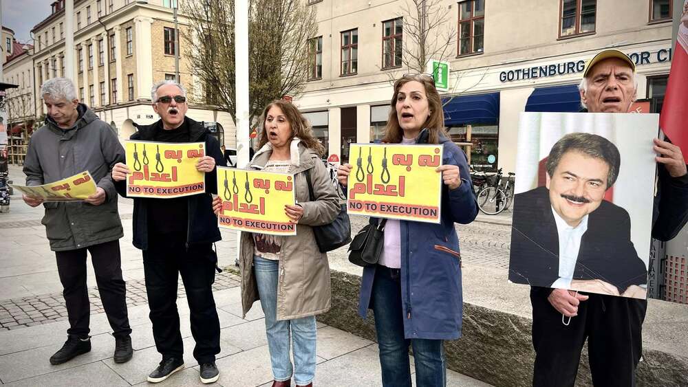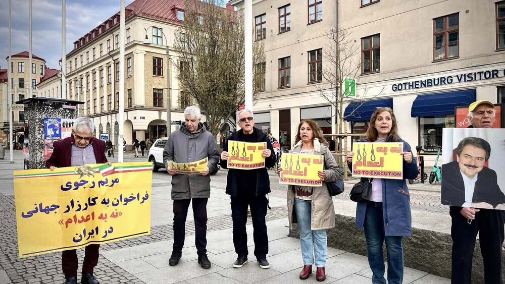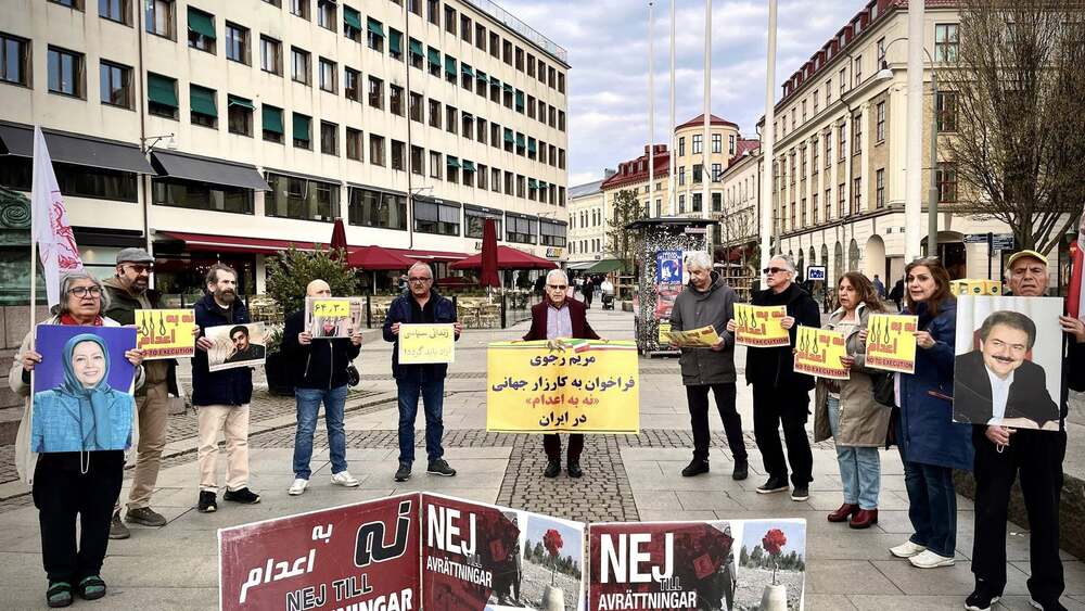 Gothenburg, Sweden – April 15, 2025: Supporters of the People’s Mojahedin Organization of Iran (PMOI/MEK) held a rally in solidarity with the No to Executions Tuesdays Campaign, marking the 30th consecutive week of their solidarity movement. The campaign is a response to the Iranian regime’s continued executions in its prisons.