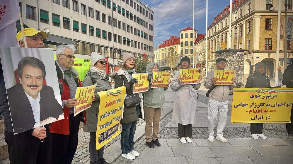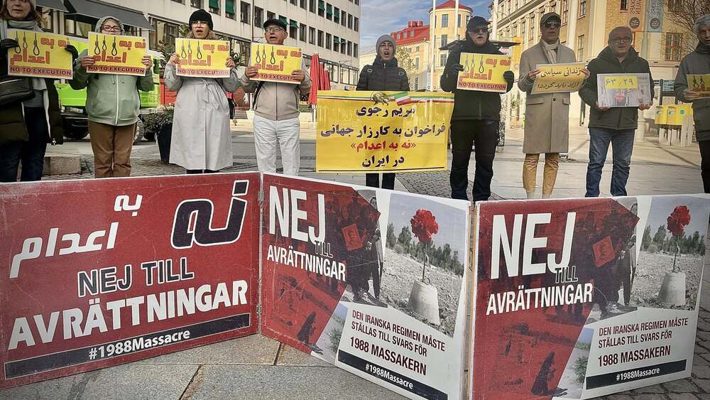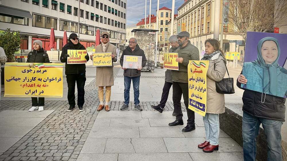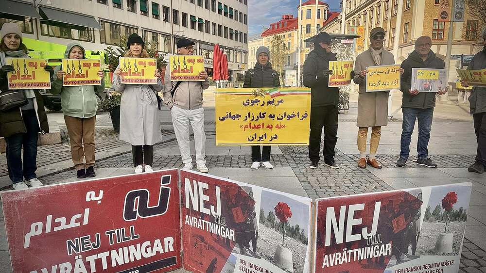 Gothenburg, Sweden – April 8, 2025: Supporters of the People’s Mojahedin Organization of Iran (PMOI/MEK) held a rally in solidarity with the No to Executions Tuesdays Campaign, marking the twenty-ninth consecutive week of their solidarity movement. The campaign is a response to the Iranian regime’s continued executions in its prisons.