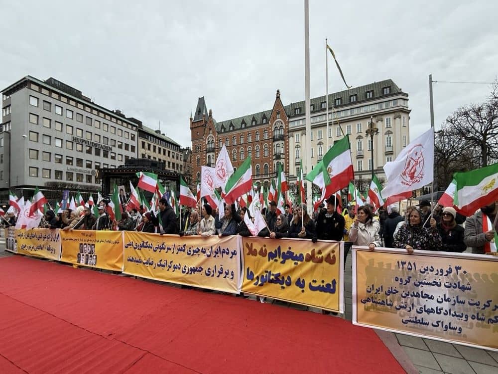 Stockholm, April 19, 2025 – Supporters of the People’s Mojahedin Organization of Iran (PMOI/MEK) and the National Council of Resistance of Iran (NCRI) held a demonstration in Stockholm to commemorate the fallen heroes of April 19, 1972, and 1975. These dates mark the execution of 13 brave members of Iran’s opposition by the Shah‘s regime, remembered by Iranians as “30 Farvardin.”
