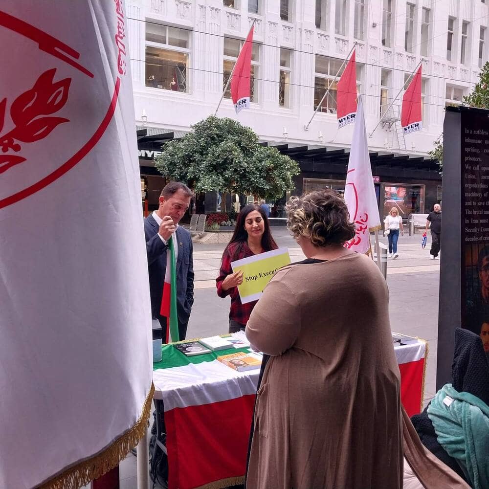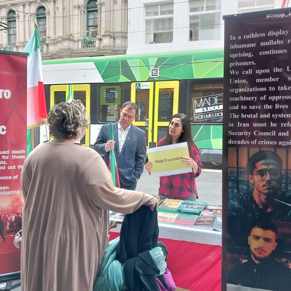 Melbourne, Australia – April 4, 2025: Supporters of the People’s Mojahedin Organization of Iran (PMOI/MEK) held an exhibition in Melbourne to raise awareness about the escalating human rights violations perpetrated by the Iranian regime. The event served as a powerful show of solidarity with the ongoing Iranian Revolution, placing particular emphasis on the surge in executions of political prisoners.