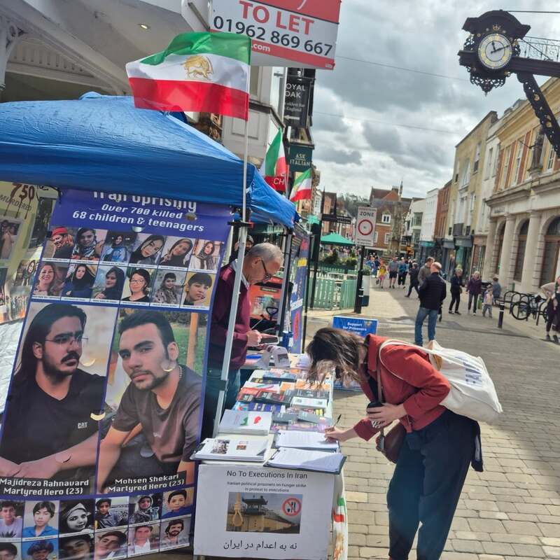 Participants used the exhibition to call on the UK government to designate Iran’s Islamic Revolutionary Guard Corps (IRGC ) as a terrorist organization and to shut down the Iranian regime’s embassy in London, labeling it a center of espionage and terror operations. Members of the Iranian diaspora in Winchester joined the call for international legal action against Iran’s ruling authorities for crimes against humanity.