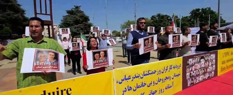 The sit-in began on April 28 and concluded on May 2. Notably, the fourth day of the protest, May 1, coincided with International Workers’ Day. On that day, participants paid tribute to Iranian laborers, particularly those who lost their lives in the recent tragic explosion in Bandar Abbas. Protesters blamed the Iranian regime and the IRGC for the catastrophe, citing the illegal storage of sensitive chemical and military materials in civilian zones as a deliberate act that turned public areas into death traps.