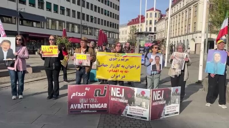 Gothenburg, Sweden – April 29, 2025: Supporters of the People’s Mojahedin Organization of Iran (PMOI/MEK) held a rally in solidarity with the No to Executions Tuesdays Campaign, marking the 32nd consecutive week of their solidarity movement. The campaign is a response to the Iranian regime’s continued executions in its prisons.