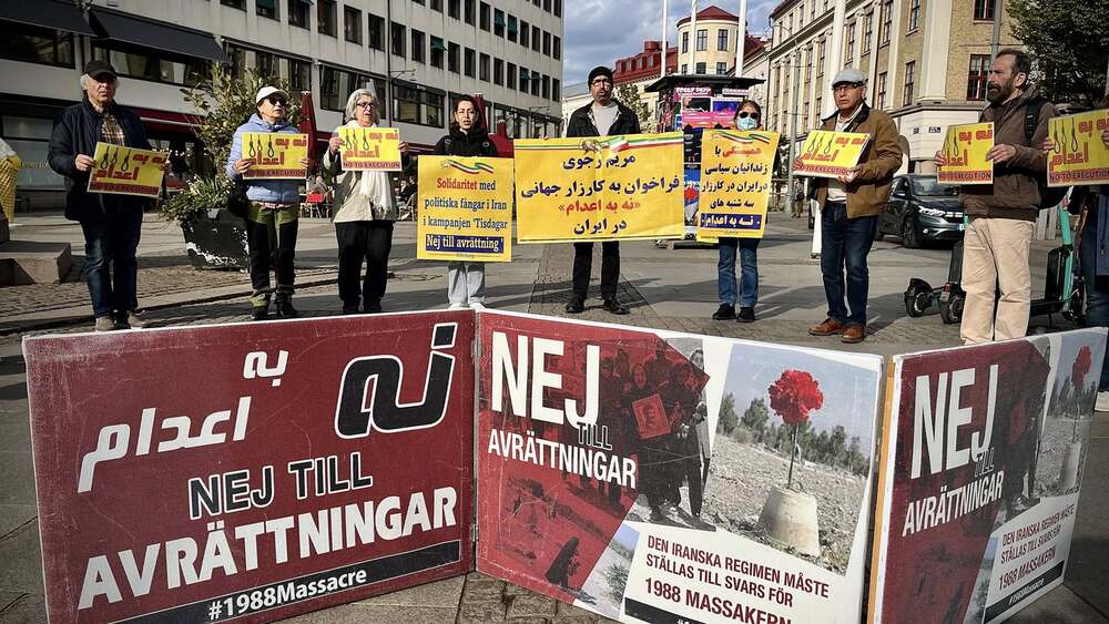 Rally participants in Gothenburg urged an end to Sweden’s policy of appeasement toward the Iranian regime and called for the Iranian Revolutionary Guard Corps (IRGC) to be designated as a terrorist organization.