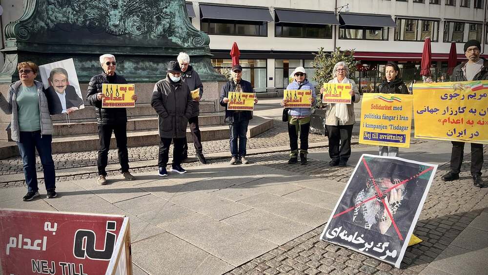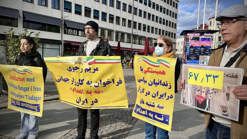 Gothenburg, Sweden – May 6, 2025: Supporters of the People’s Mojahedin Organization of Iran (PMOI/MEK) held a rally in solidarity with the No to Executions Tuesdays Campaign, marking the 33th consecutive week of their solidarity movement. The campaign is a response to the Iranian regime’s continued executions in its prisons.