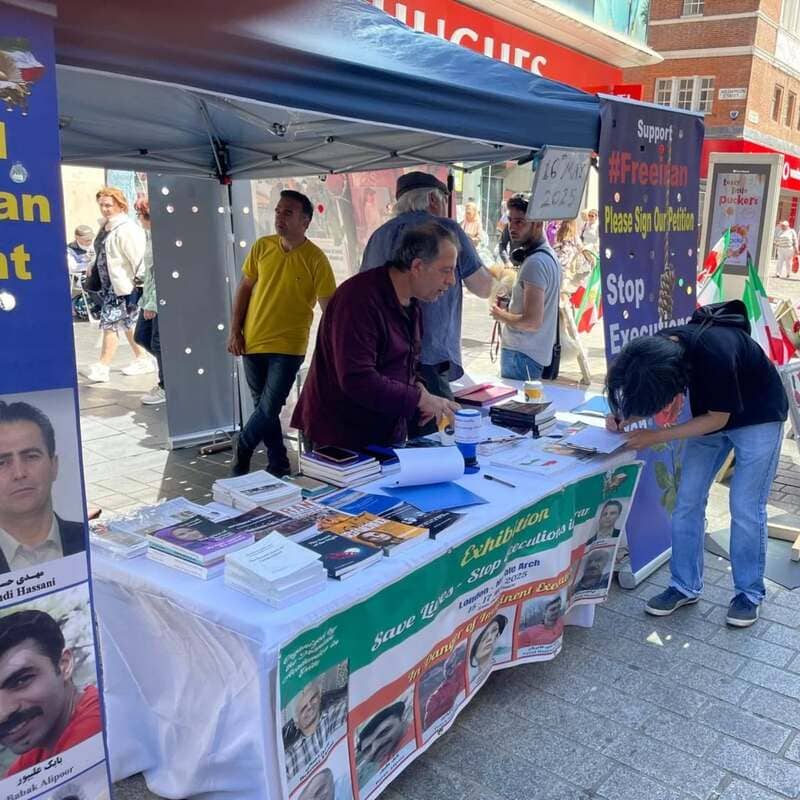 Members of the Iranian diaspora, local citizens, and human rights activists attended the exhibition, voicing strong support for international legal action against Iran’s leadership for crimes against humanity. The event reflected growing public concern in the UK over Iran’s human rights violations and the need for a firm international response.