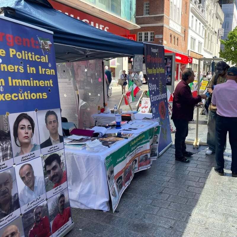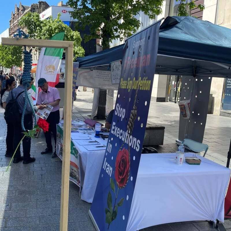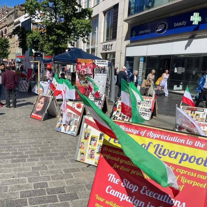 In Liverpool, the campaign was led by the Academics in Exile Association, a group of Iranian scholars affiliated with the People’s Mojahedin Organization of Iran (PMOI/MEK). The event featured a photo exhibition and informational bookstall, drawing attention to the sharp rise in executions and the Iranian regime’s escalating repression of political dissent.