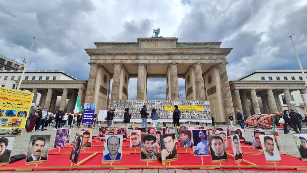 Berlin, Germany – May 17, 2025 – Supporters of the People’s Mojahedin Organization of Iran (PMOI/MEK) held a rally and exhibition at the Brandenburg Gate to protest the Iranian regime’s escalating human rights violations, with particular focus on the death sentences imposed on political prisoners.
