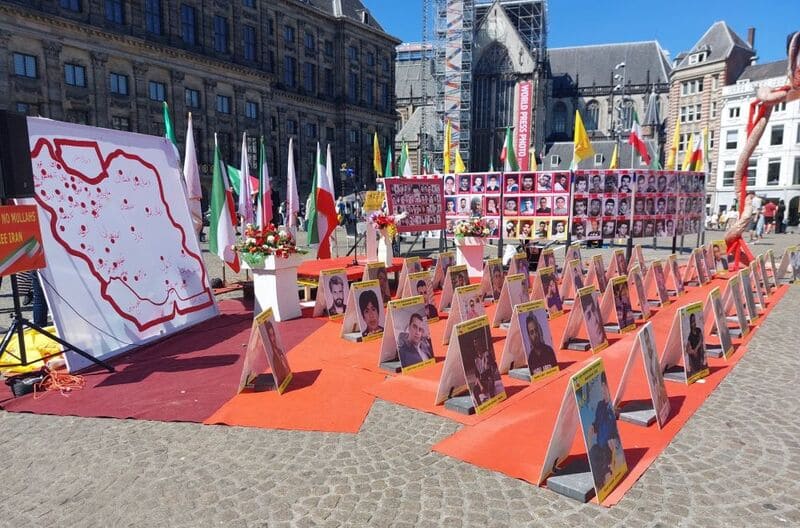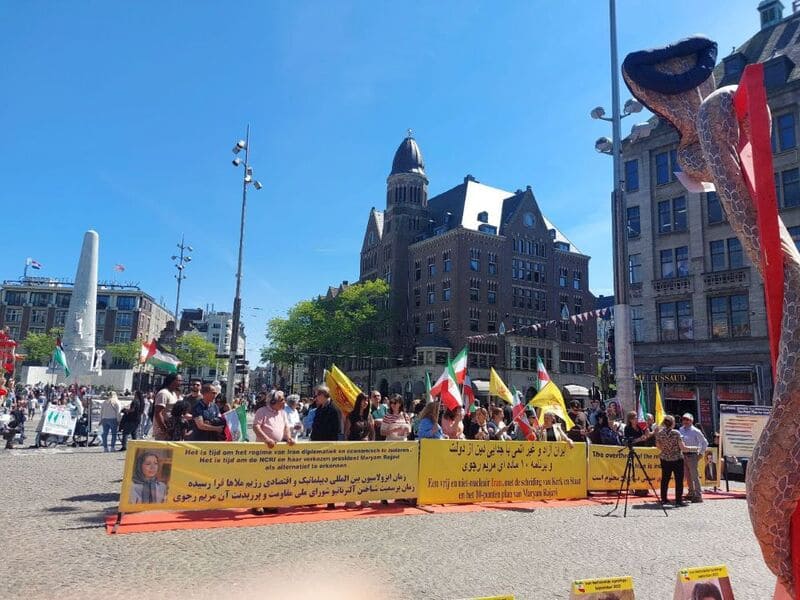 Amsterdam, the Netherlands – May 10, 2025: Supporters of the People’s Mojahedin Organization of Iran (PMOI/MEK) held a powerful rally and exhibition in Dam Square to highlight the Iranian regime’s escalating human rights abuses. The event showcased unwavering solidarity with the ongoing Iranian Revolution and strong backing for Maryam Rajavi’s 10-point plan for a democratic, secular, and non-nuclear Iran.