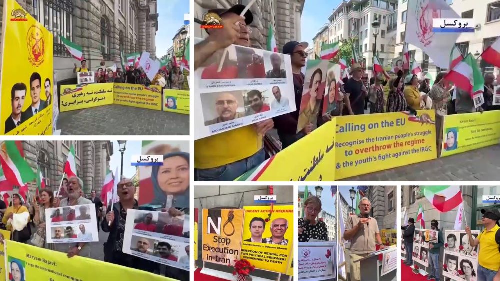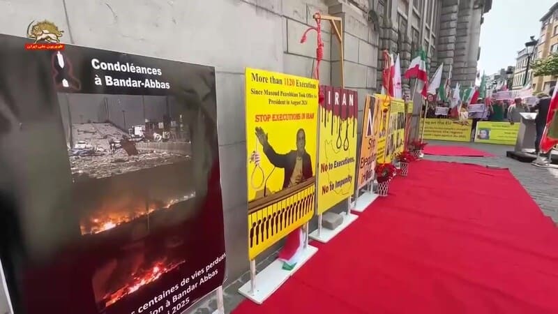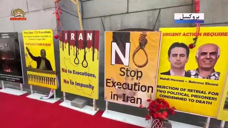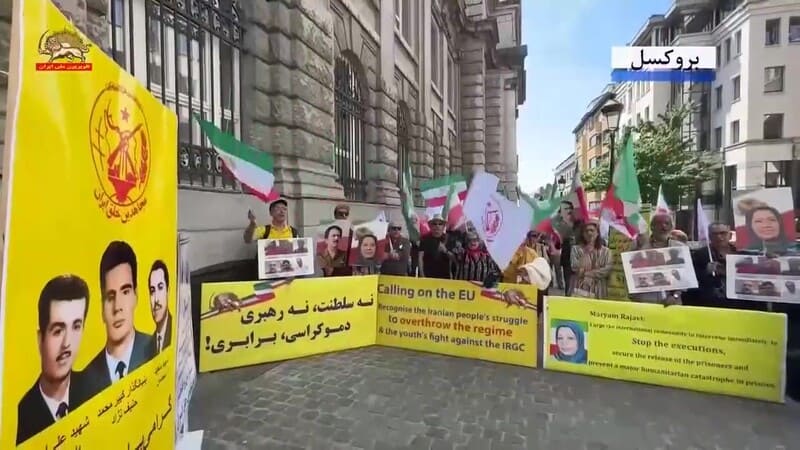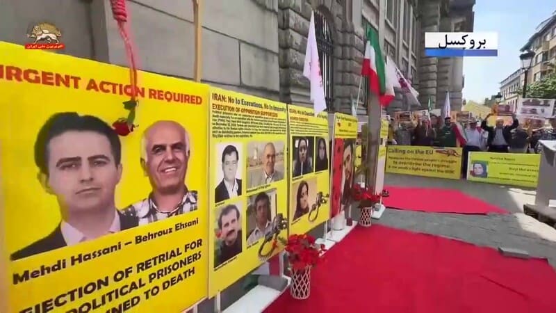 Brussels, Belgium – May 24, 2025: Supporters of the Iranian Resistance held a rally and exhibition in Brussels to commemorate the anniversary of the execution of the PMOI/MEK’s founders by the Shah’s regime on May 25, 1972. The event also marked the 60th anniversary of the MEK’s founding in 1965 and six decades of steadfast struggle against two successive dictatorships in Iran: first the monarchy of the Shah, and now the theocratic regime of the mullahs.
