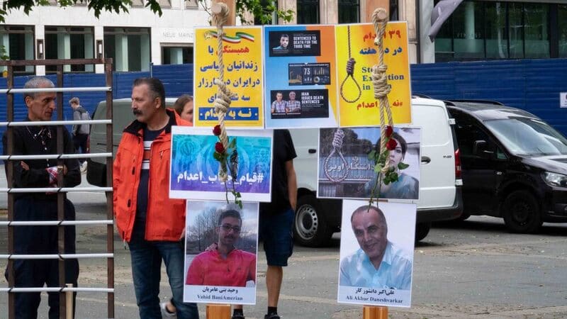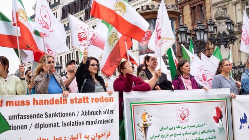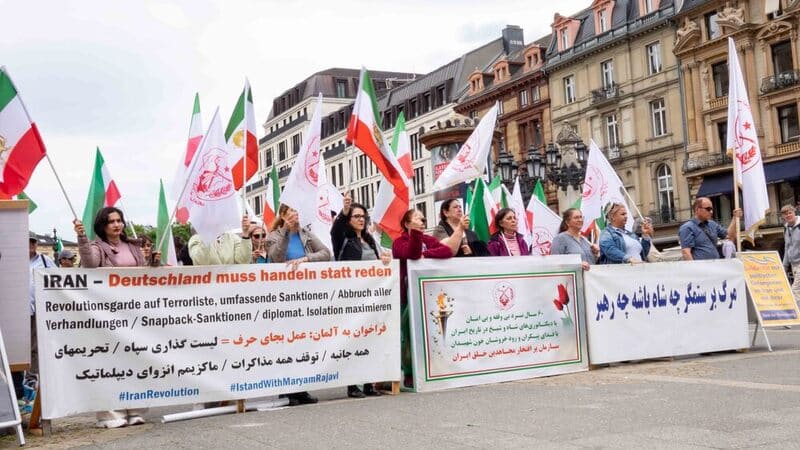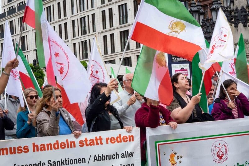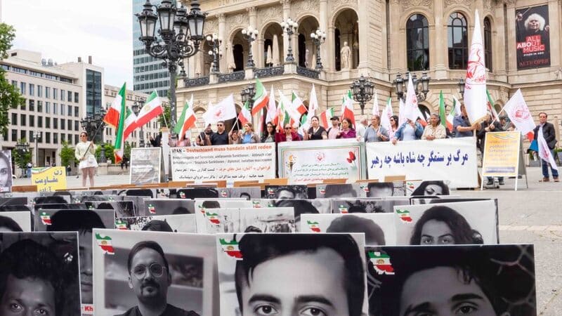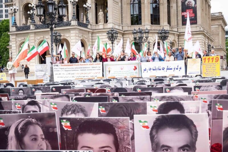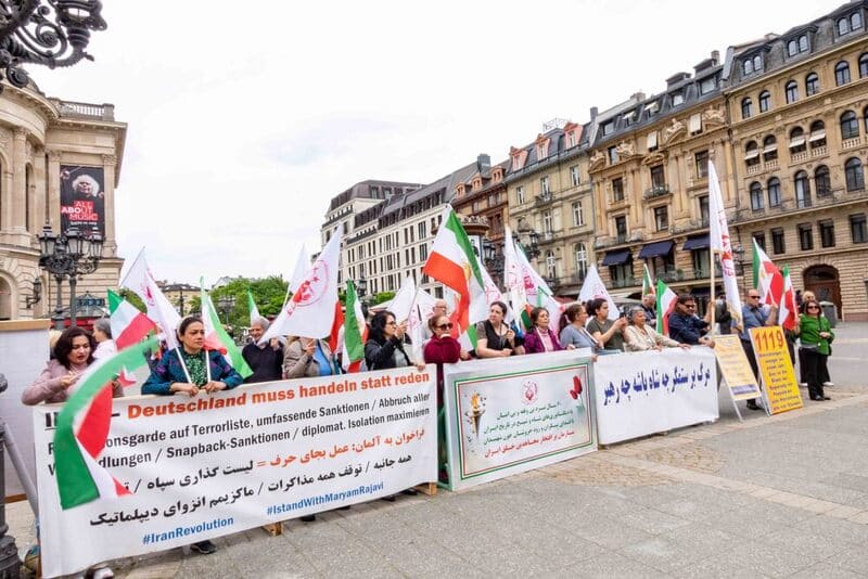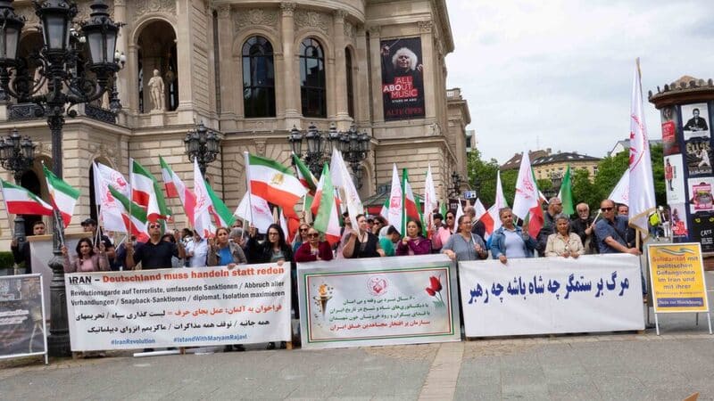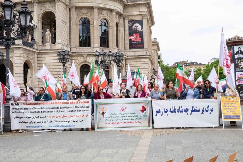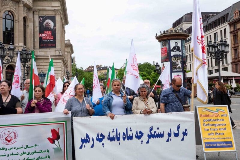Frankfurt, Germany – May 24, 2025: Supporters of the Iranian Resistance held a rally in Frankfurt to commemorate the anniversary of the execution of the PMOI/MEK’s founders by the Shah’s regime on May 25, 1972. The gathering also marked the 60th anniversary of the MEK’s founding in 1965 and six decades of steadfast struggle against two successive dictatorships in Iran: first the monarchy of the Shah, and now the theocratic regime of the mullahs.