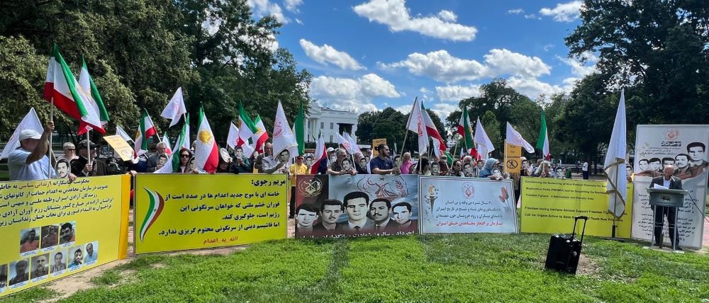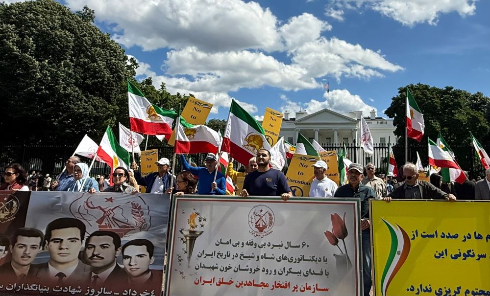 Washington, DC – May 24, 2025: Supporters of the Iranian Resistance from the District of Columbia, Maryland, and Virginia (DMV) gathered in front of the White House to commemorate the anniversary of the execution of the PMOI/MEK’s founders by the Shah’s regime on May 25, 1972.