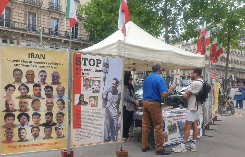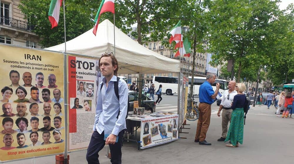 Paris, France – May 29, 2025: Supporters of the People’s Mojahedin Organization of Iran (PMOI/MEK) held an exhibition in Paris to condemn the Iranian regime’s intensifying human rights abuses and its brutal use of the death penalty.
