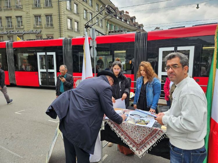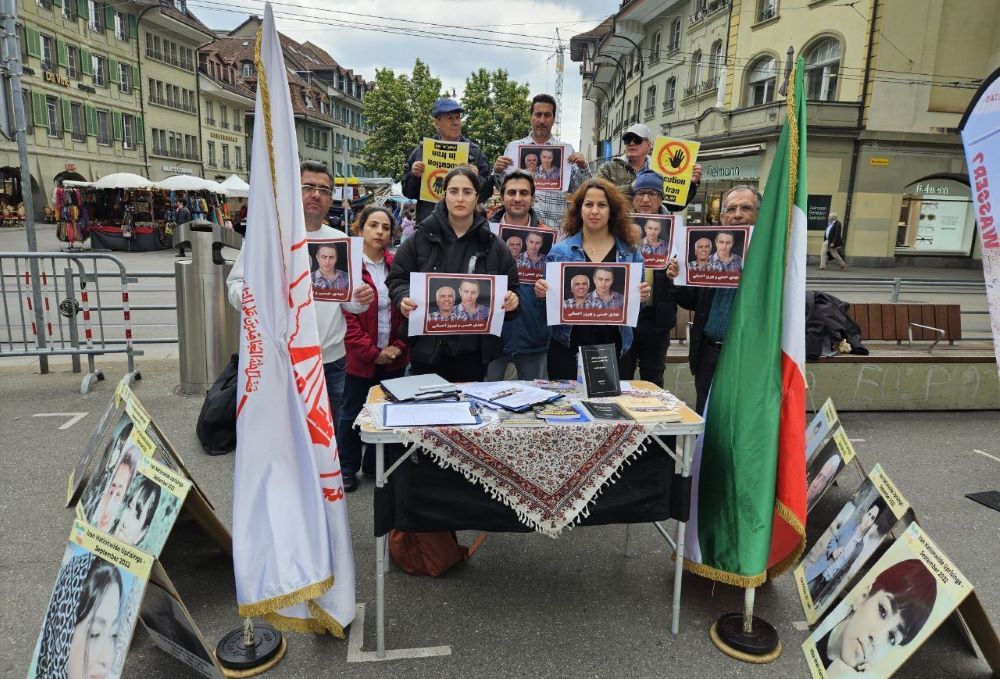Bern, Switzerland – May 8, 2025 – Supporters of the People’s Mojahedin Organization of Iran (PMOI/MEK) organized an exhibition in Bern to protest the Iranian regime’s harsh repression, particularly the death sentences issued for political prisoners Behrouz Ehsani and Mehdi Hassani, who reportedly face imminent execution.