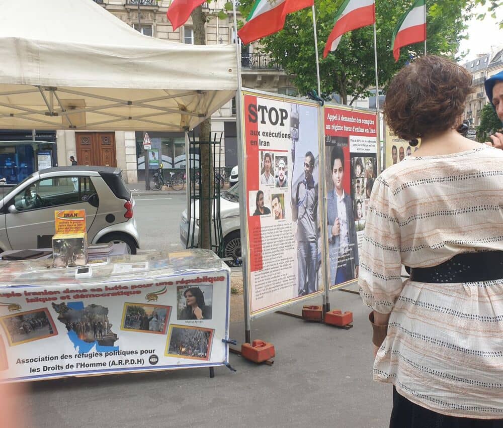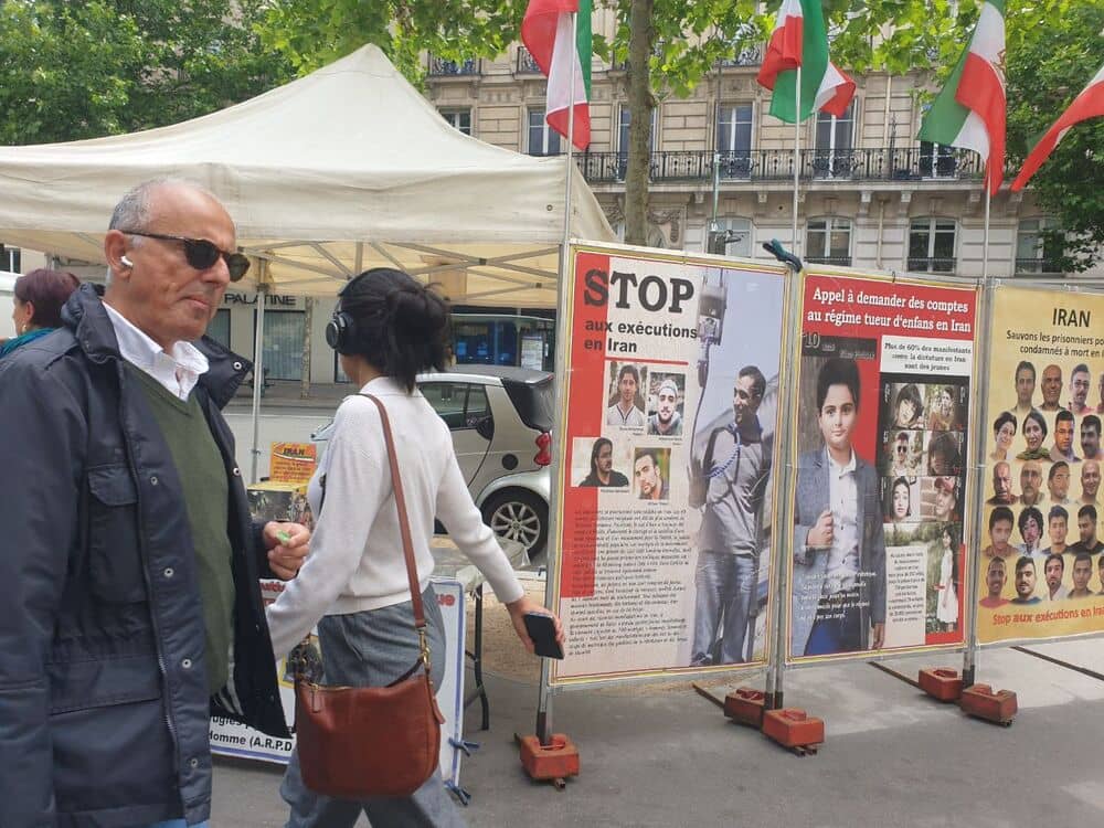 Paris, France – June 6, 2025 – Supporters of the People’s Mojahedin Organization of Iran (PMOI/MEK) held an exhibition in Paris to condemn the Iranian regime’s escalating human rights abuses, with a particular focus on the sharp rise in executions across the country.