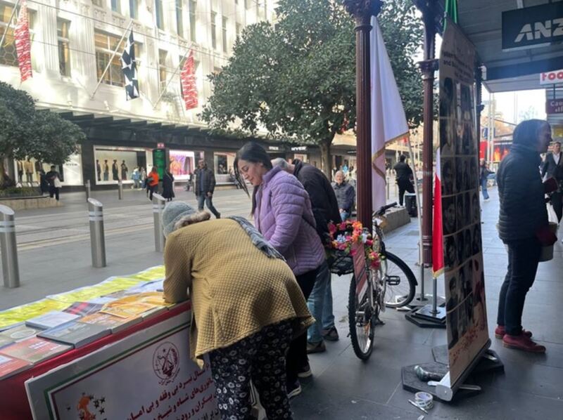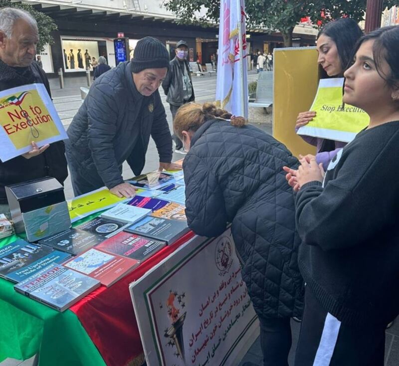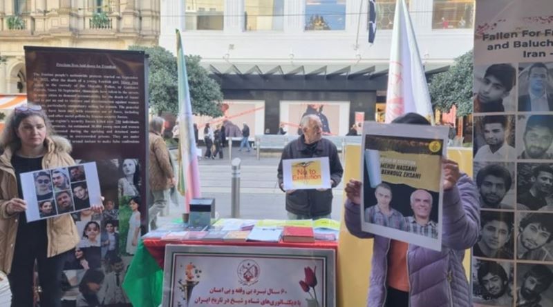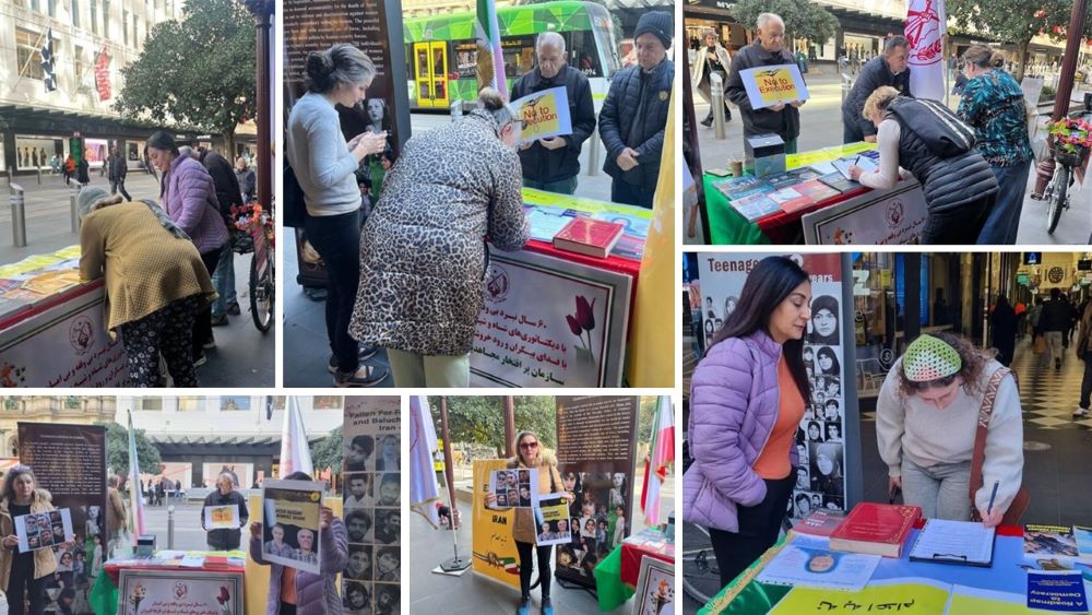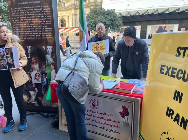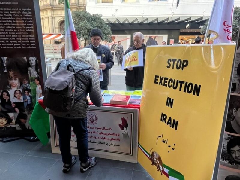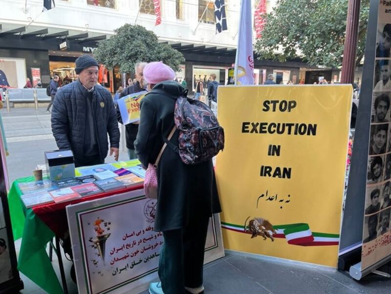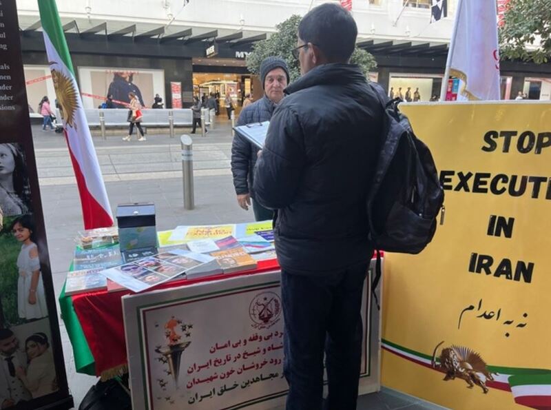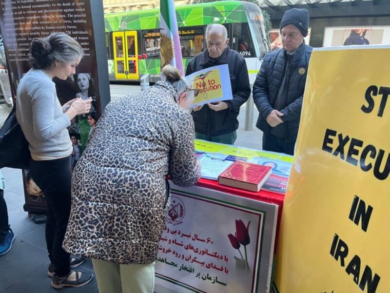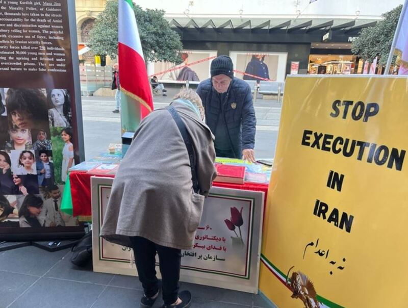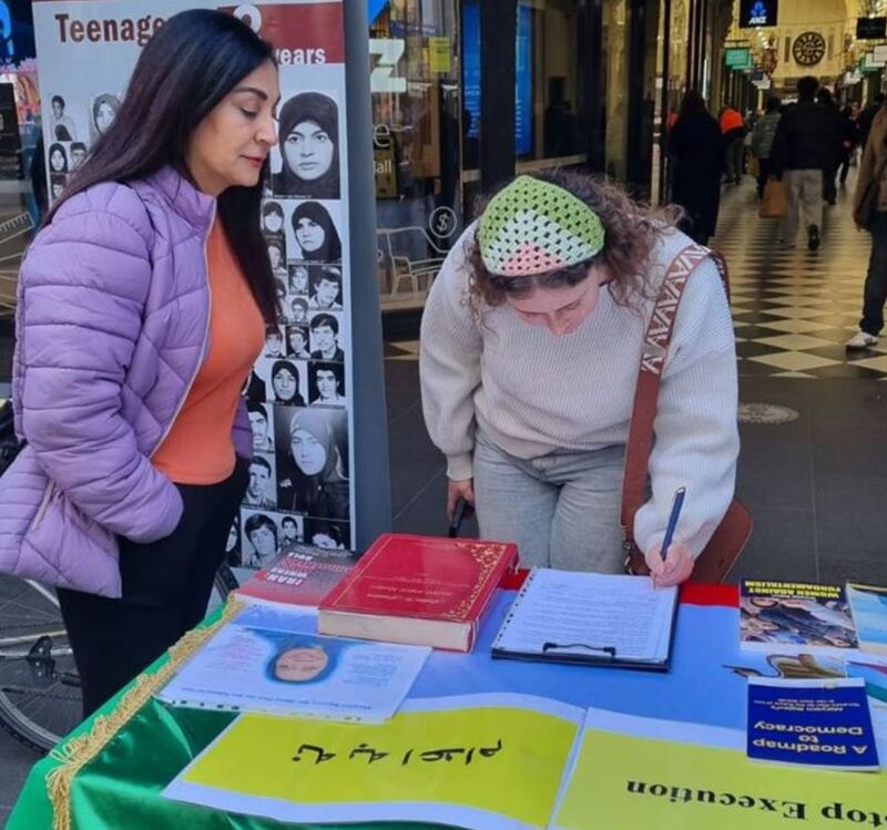 Melbourne, Australia – June 20, 2025: Supporters of the People’s Mojahedin Organization of Iran (PMOI/MEK) organized an exhibition to protest the Iranian regime’s escalating human rights abuses, particularly the death sentences imposed on political prisoners.