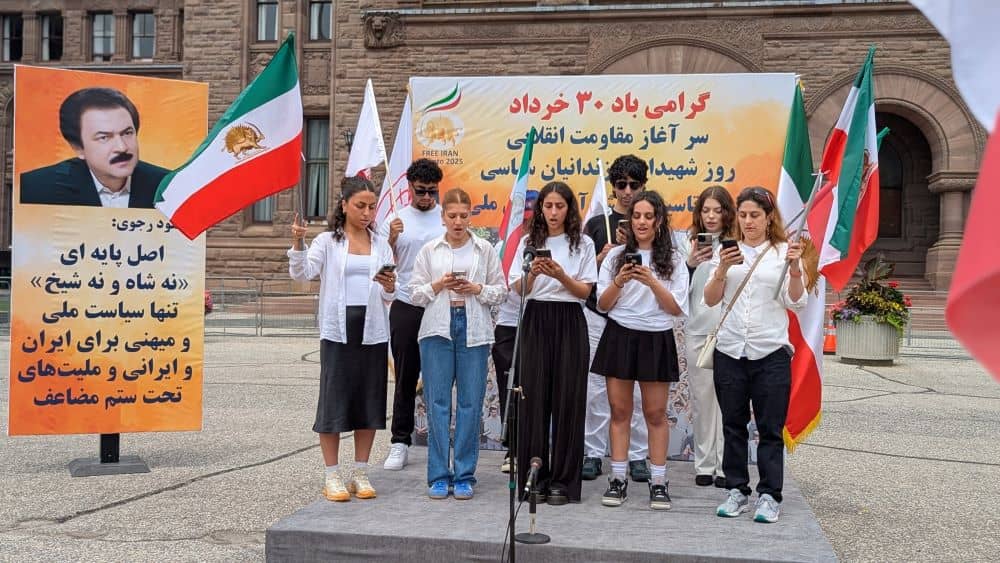 Toronto, Canada – June 21, 2025: Supporters of the People’s Mojahedin Organization of Iran (PMOI/MEK) gathered to commemorate the anniversary of the nationwide protests on June 20, 1981, in Iran. This significant event marked the start of organized resistance against the ruling clerical regime. On that day, regime security forces violently attacked peaceful protesters, leading to a brutal crackdown involving torture, mass arrests, and executions.