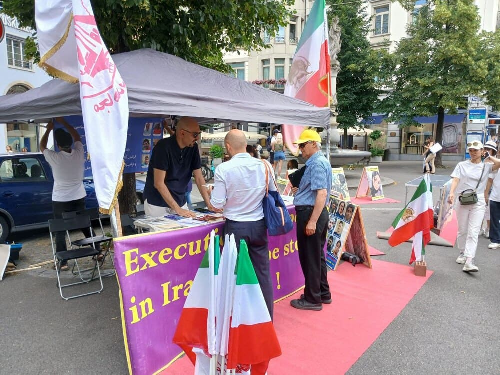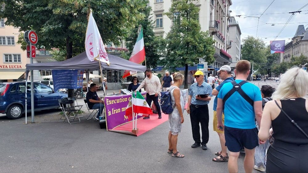 Zurich, Switzerland – June 23, 2025 – Supporters of the People’s Mojahedin Organization of Iran (PMOI/MEK) held an exhibition to protest the Iranian regime’s escalating human rights abuses, with a special focus on the recent surge in executions across the country.