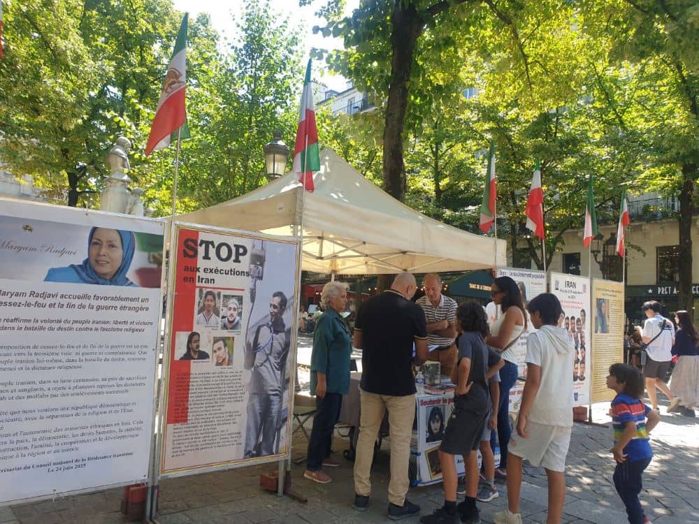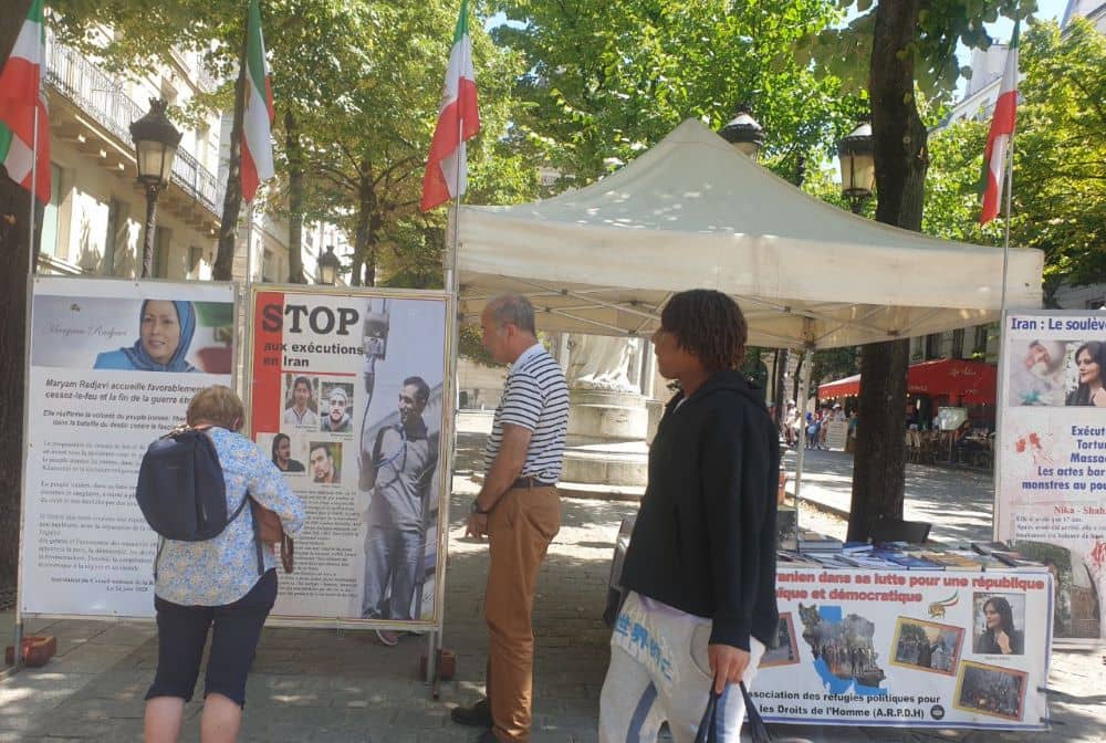 Paris, France – July 10, 2025 – Supporters of the People’s Mojahedin Organization of Iran (PMOI/MEK) organized an exhibition to denounce the Iranian regime’s worsening human rights violations, with a particular focus on the recent surge in executions across the country.
