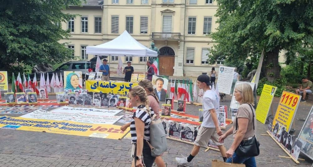 Heidelberg, Germany – July 12, 2025: Supporters of the People’s Mojahedin Organization of Iran (PMOI/MEK) held an exhibition to condemn the escalating human rights abuses by the Iranian regime, particularly the rising number of death sentences imposed on political prisoners.