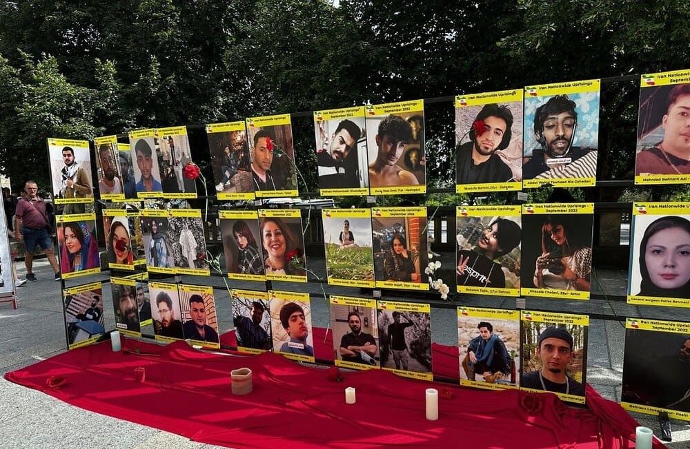 During the rally, an exhibition of photos honoring the martyrs of Iran’s past uprisings—especially the 2022 nationwide protests—was displayed, reminding participants of the ongoing struggle and sacrifices made by the Iranian people.